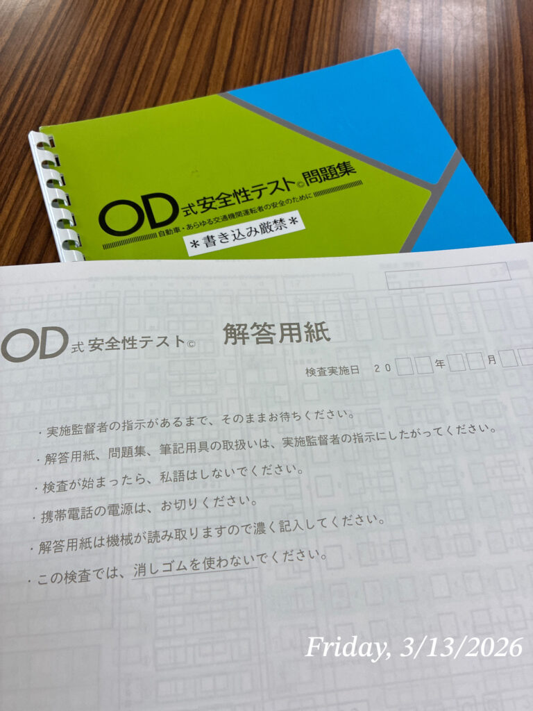 ★ OD式 安全性テスト ★(令和8年3月13日)
